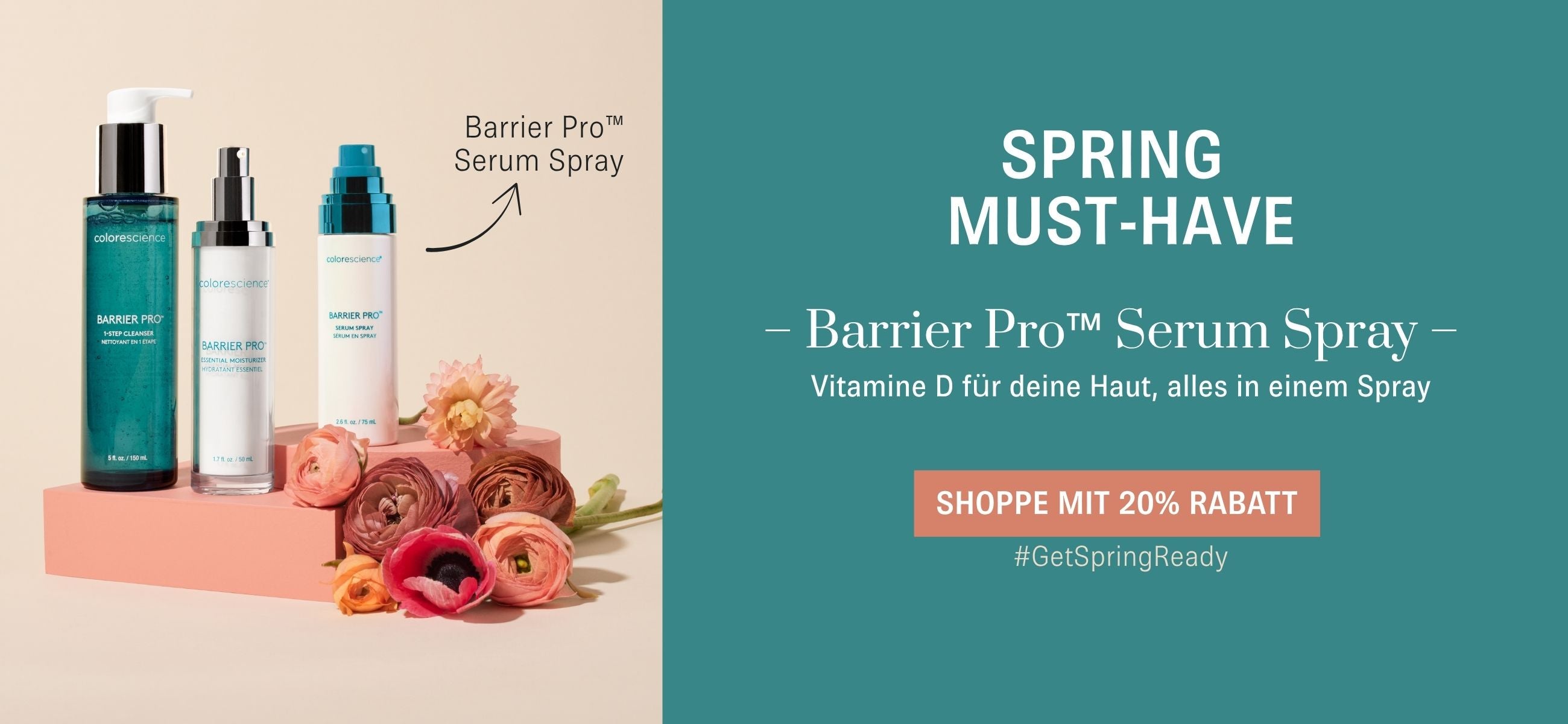 Das Barrier Pro™ Serum Spray von Colorescience wurde entwickelt, um die Haut täglich mit Feuchtigkeit und Vitamin-D-abhängigen Hautprozessen zu versorgen – ganz ohne Sonneneinstrahlung. Dieser lei...